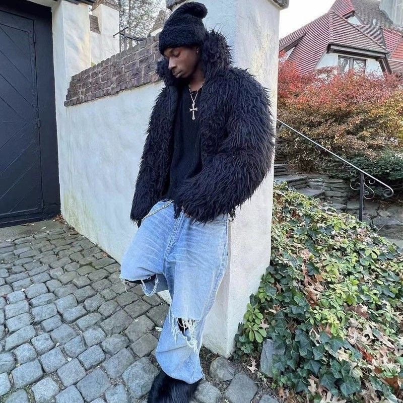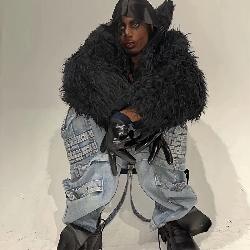 Дээд хэсэгт бүхэлдээ урт, өтгөн Premium Faux Fur-ээр бүрхэгдсэн Oversized хүрэм нь тансаг бөгөөд зэрлэг мэдрэмжийг төрүүлэх бол, доод хэсэгт боксчны өмдний судалтай бүсэлхий бүхий Extreme Wide-Leg өмд нь төгс зохицно. Өмдөн дээрх "Shai Rebelo" уран бичлэг болон морьтой хүний өндөр чанартай хатгамал нь энгийн загварыг "High-fashion" түвшинд аваачсан шийдэл юм.