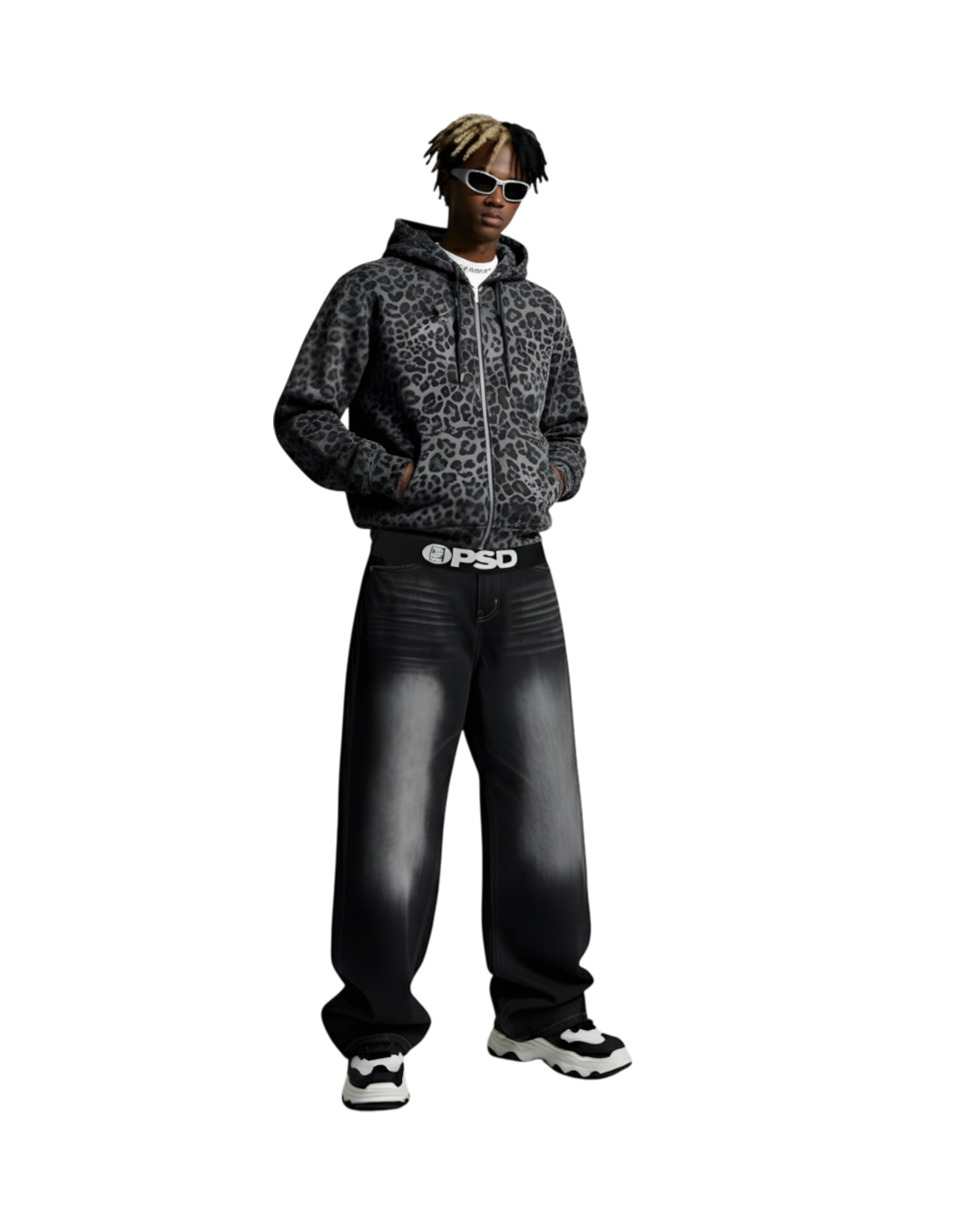 Streetwear болон Grunge хэв маягийн зоримог шийдэл болох бүхэлдээ леопард (ирвэс) хээтэй, Boxy Oversizedзагварын юүдэнтэй цамц нь таныг vintage бөгөөд хүчирхэг харагдуулна. Үүнийг Cyber-Y2K уур амьсгалтай, гол хэсгээрээ тод Washed цайралт бүхий Wide-Leg Fit хар денимтэй хослуулснаар хөлийг урт харагдуулж, орчин үеийн загварын төгс тэнцвэртэй, хараа булаам силуэтийг бий болгоно.