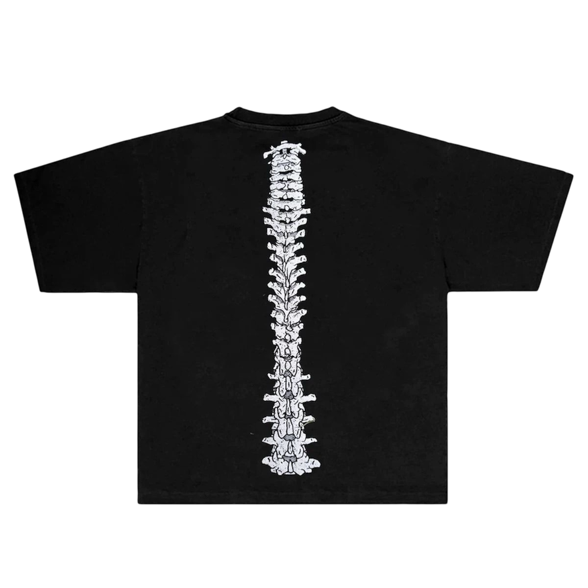 Хотын гудамжны стилийг "Dark" болон "Cyber" элементүүдээр баяжуулсан, гүн хар өнгийн (Vintage Black) богино ханцуйтай цамц. Цамцны ар хэсэгт байрлах нарийн хийцтэй нурууны ясны (Spine) анатомийн зураглал нь загварыг маш өвөрмөц, зоримог харагдуулах гол деталь болно. Урд хэсэгт байрлах минималист лого болон нүсэр сул уналттай (Boxy/Oversized Fit) шийдэл нь таныг илүү "cool", нууцлаг төрхтэй харагдуулна.